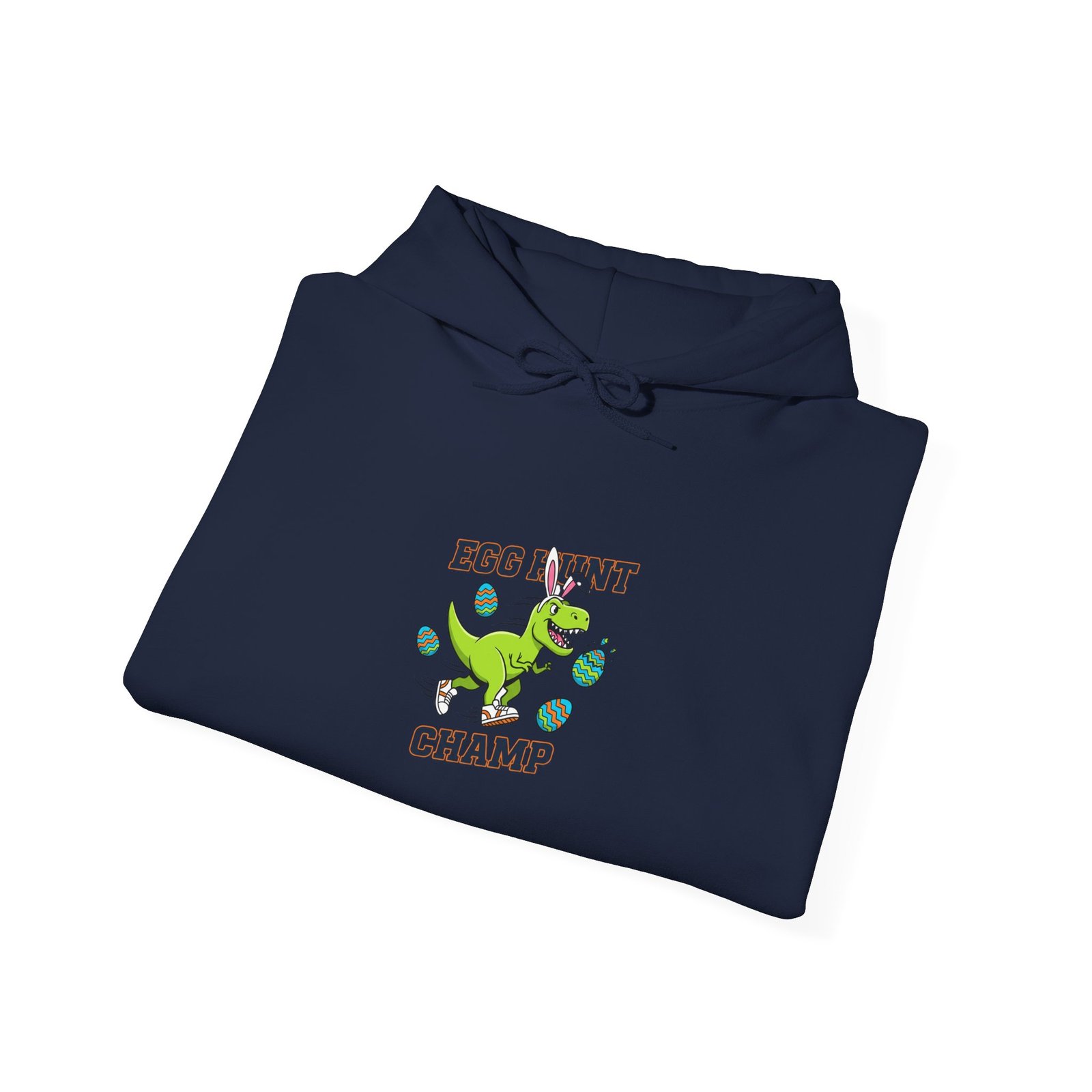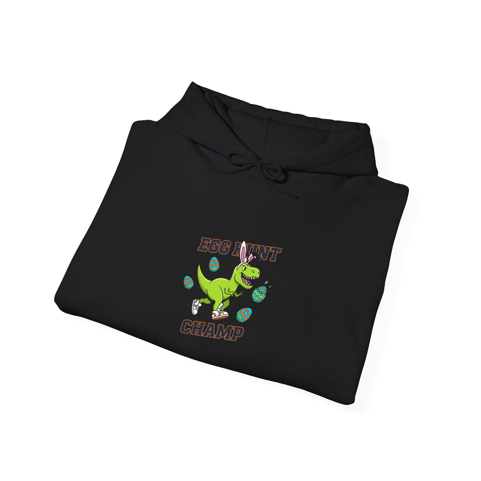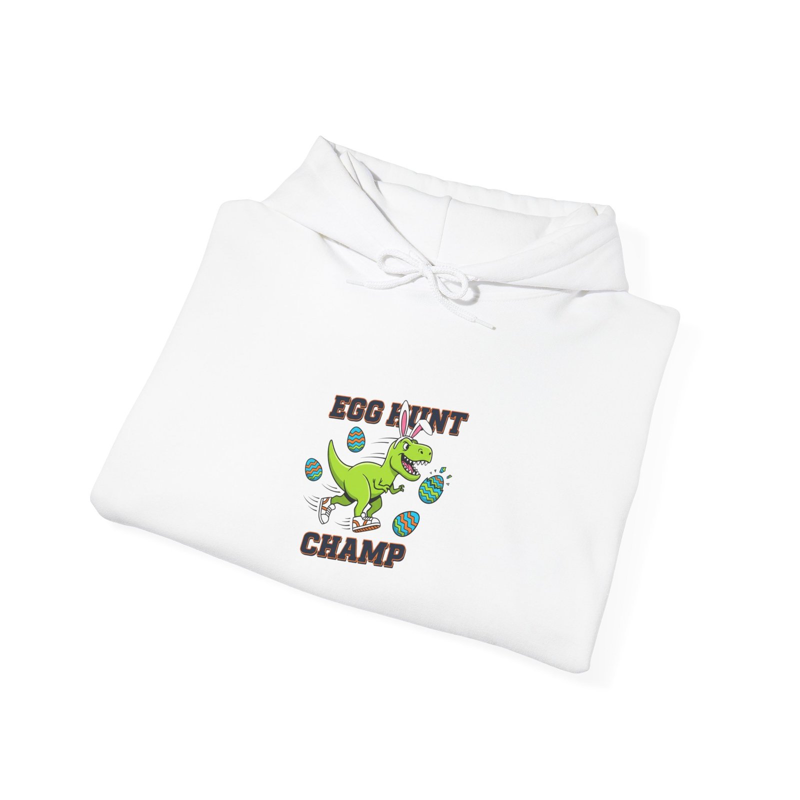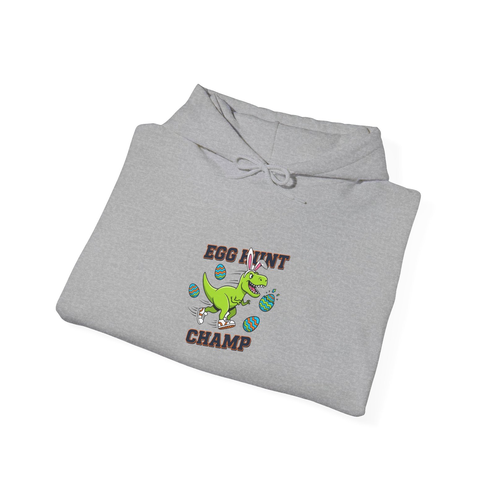 Chunky, high-energy kids hoodie featuring a playful dinosaur clutching an Easter egg with bold type—designed for boys who want a confident, adventurous look at egg hunts and family photos. The saturated green dinosaur artwork pairs with sturdy, blocky lettering to read as active and spirited rather than pastel-soft; it reads clearly in group shots and matches the ‘boys Easter shirt’ and ‘egg hunter’ search language. Made on a medium-heavy unisex hooded sweatshirt, this piece brings a rugged, seasonal vibe that fits lively springtime play and outdoor egg hunts.