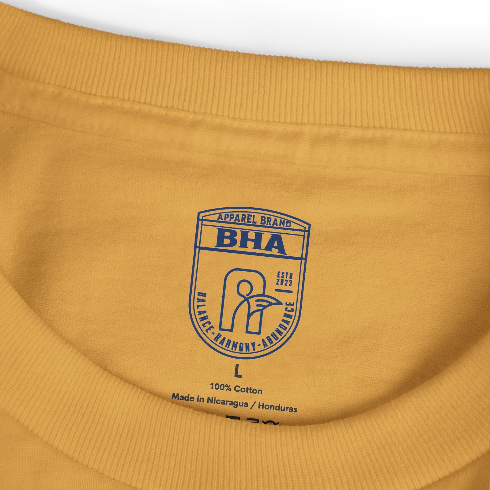 A vintage-inspired unisex heavyweight cotton tee with a BHA back logo. Perfect for everyday casual wear or as a unique statement piece. Ideal for those who appreciate sustainable and socially conscious manufacturing practices.